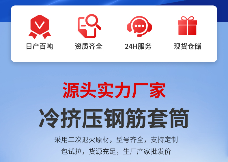 您的位置:首頁>>產(chǎn)品中心>>鋼筋套筒系列>>冷擠壓鋼筋套筒