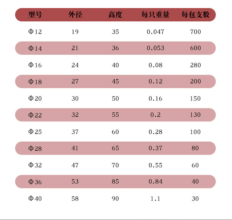| 產(chǎn)品規(guī)格 | 外徑 | 長度 |